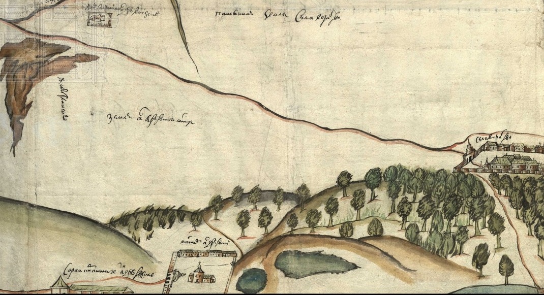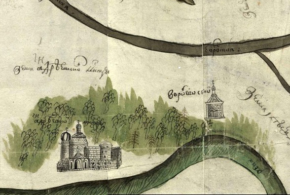 Фрагмент "Чертежа земель от Колужских и Серпуховских ворот до села Воробьева" с изображением Андреевского монастыря.